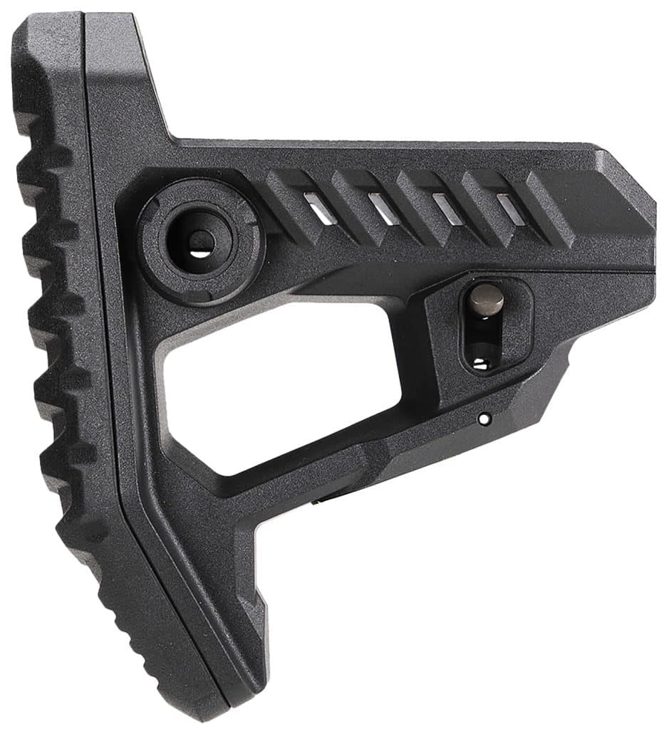 The Strike Polymer Pit Stock is the evolution of the original aluminum Pit Stock, designed for those seeking a version that is equally high-strength but lighter in weight. Made from a custom blended SI Polymer Extreme material. With its 4-position adjustability, the stock can be easily adjusted to fit any shooter’s preference. The rubber anti-slip buttpad ensures a comfortable and secure shoulder hold, while the ambidextrous QD sling mounting points provide flexibility for carrying options.