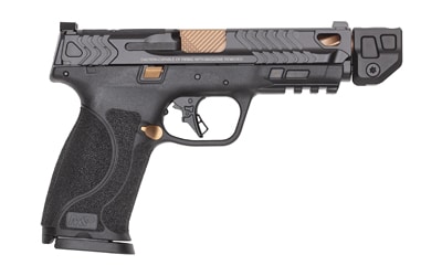Continuing to pursue excellence and performance, the new Performance Center M&P9 M2.0 polymer-frame pistol focuses on enhancing the shooting experience. Strategically designed to leverage the gases escaping the end of the gun during firing, the Strike Industries threaded compensator helps reduce felt recoil meaning you can stay on target better.