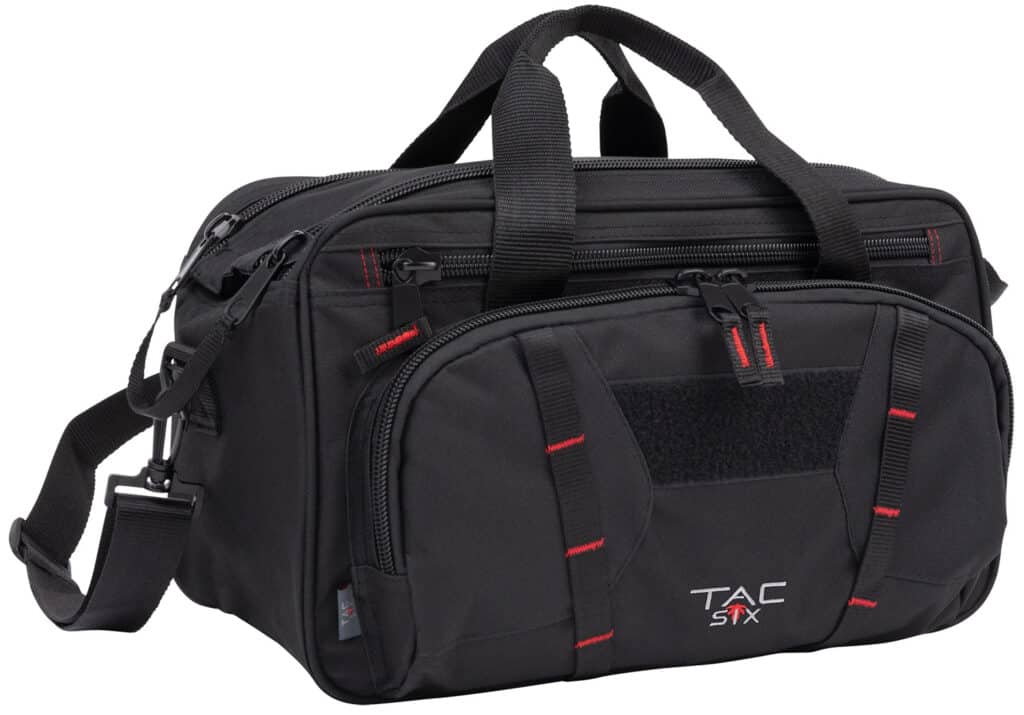 The Tactical Sporter Range Bag by Allen was designed for the serious shooter. Constructed of rugged Endura black fabric with red stitching and accents that will withstand whatever you can throw in it.