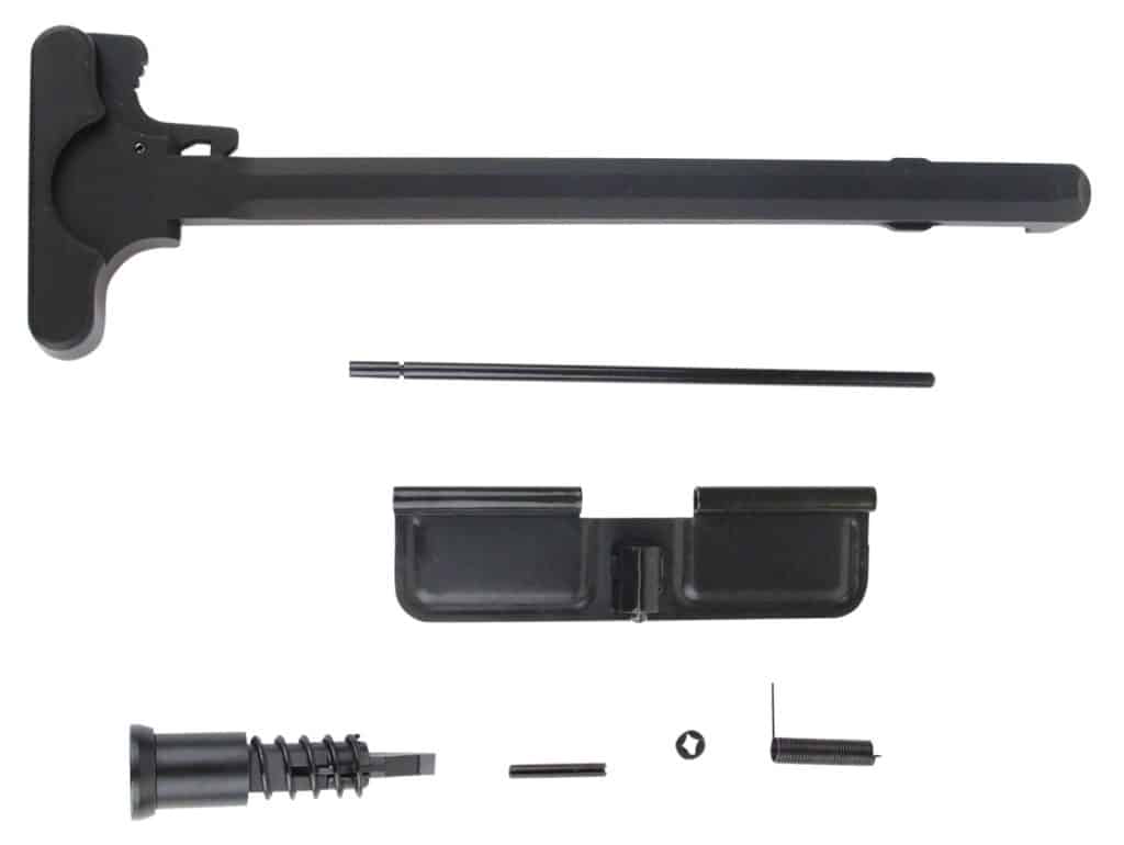 TacFire’s AR15 Upper parts kit features a standard charging handle, dust cover, and forward assist.