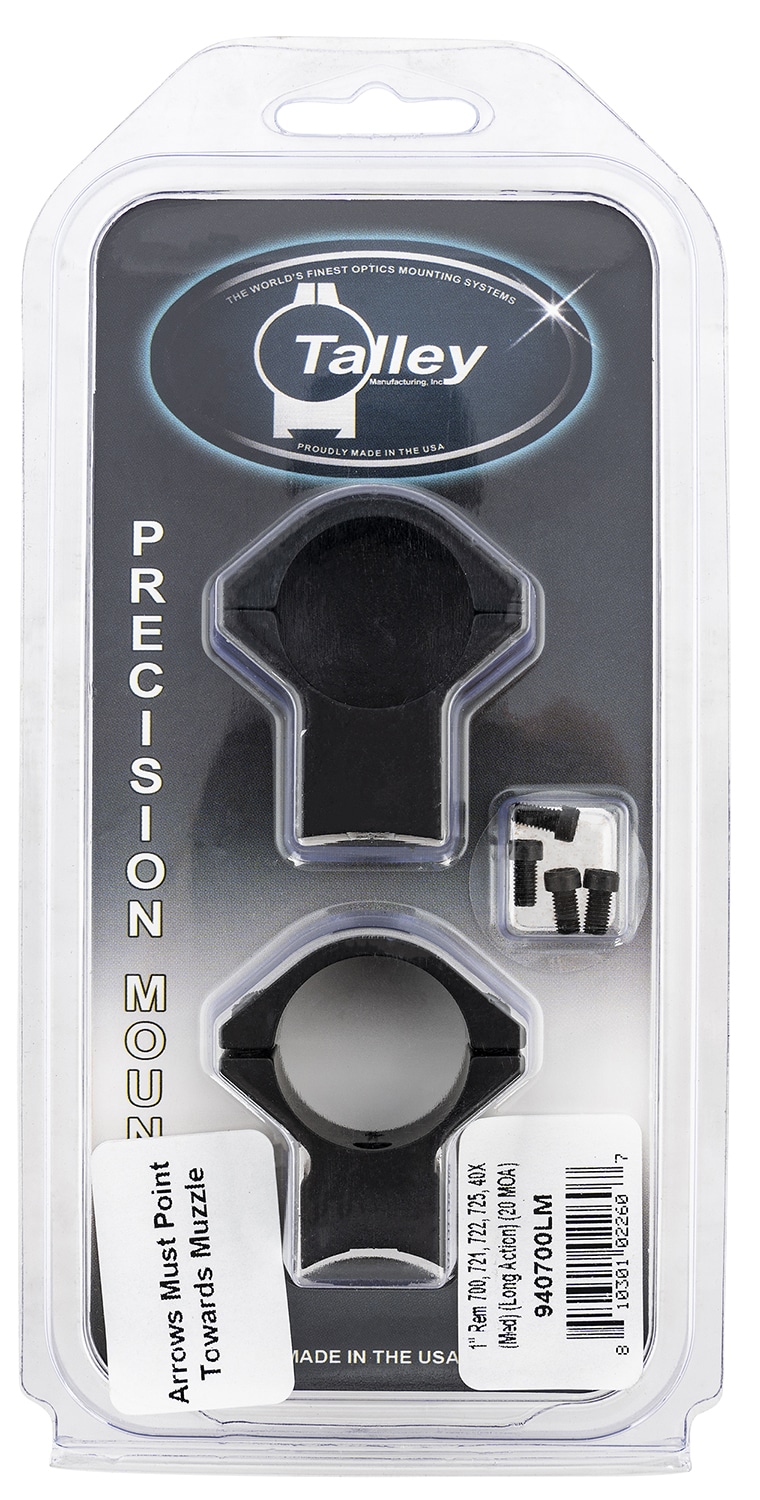 Talley 940700LM Scope Mount/Ring Combo Black Anodized Aluminum 1″ Tube Remington 700/721/722/725/40X Medium Rings Long Action 20 MOA