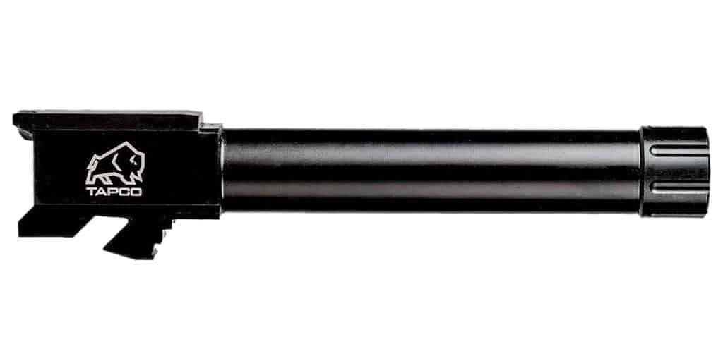 Made from match grade 414 stainless steel with a black nitride finish, upgrade your barrel with the TAPCO Glock 19 Threaded Replacement Drop-In Barrel. An easy-to-install barrel, simply just drop it in, no gunsmith or other modifications are required. All threaded barrels also include a thread protector.