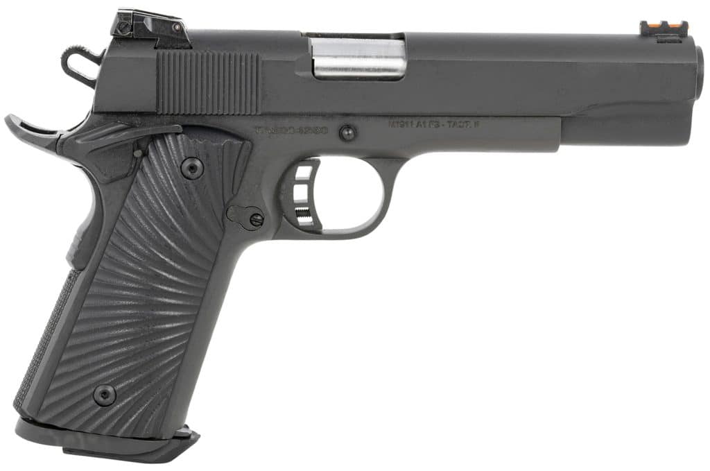 Taylors & Company 230056 1911 Tactical Full Size 10mm Auto 8+1, 5″ Stainless Steel Barrel, Black Parkerized Serrated Slide, Black Parkerized Steel Frame w/Beavertail, Black/Gray G10 Grip