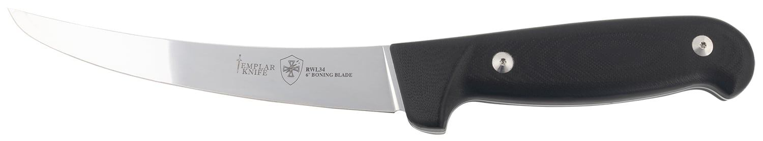 Templar Knife K6BBK362 Boning 6″ Fixed Plain Damasteel Blade, 5″ Black G10 Handle