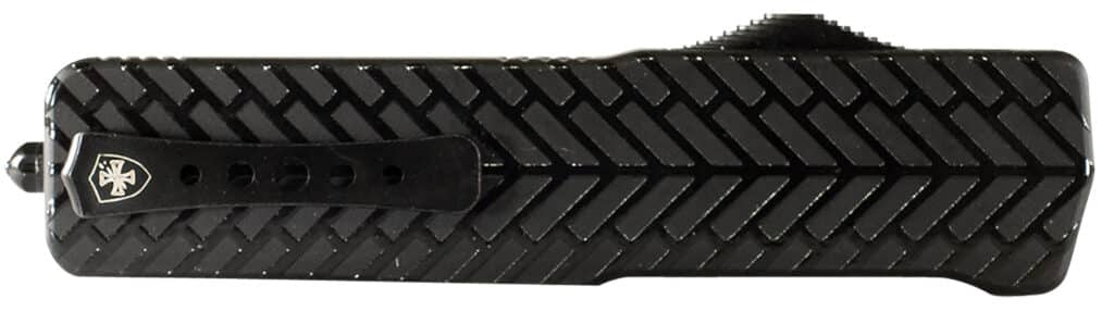 Templar Knife LAHBG52 Premium LW Large 3.55″ OTF Tanto Part Serrated Black Oxide Stonewashed D2 Steel Blade, 5.25″ Black Herringbone Aluminum Handle