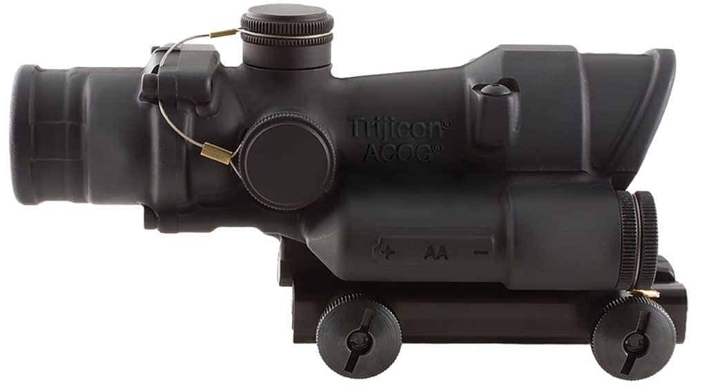Trijicon’s ACOG is a fixed power, compact riflescope with an illuminated reticle pattern for use in bright to low/no light with legendary durability and reliability. Featuring forged 7075-T6 aircraft-aluminum-alloy housing, multi-coated lenses, fog/waterproof and shock-resistant, proven to withstand recoil from 22LR up to 50 BMG, and easily passes U.S. military drop test requirements. Includes a thumbscrew flattop adaptor, AA battery, LENSPEN, lanyard assembly for adjuster caps and battery cap, Trijicon logo sticker, ACOG manual and warranty card.