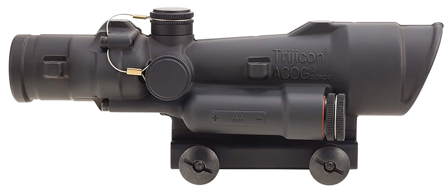 The LED ACOG is the first to offer user-selectable brightness controls. Users can select from six adjustable brightness levels with an “off” between each setting, allowing the operator to determine how much to illuminate the reticle – even in transitional lighting. Users can select multiple bullet drop compensating and ranging reticle options. Includes a thumbscrew flattop adaptor, AA battery, LENSPEN, lanyard assembly for adjuster caps, lanyard assembly for battery cap, Trijicon logo sticker, LED ACOG manual and warranty card.