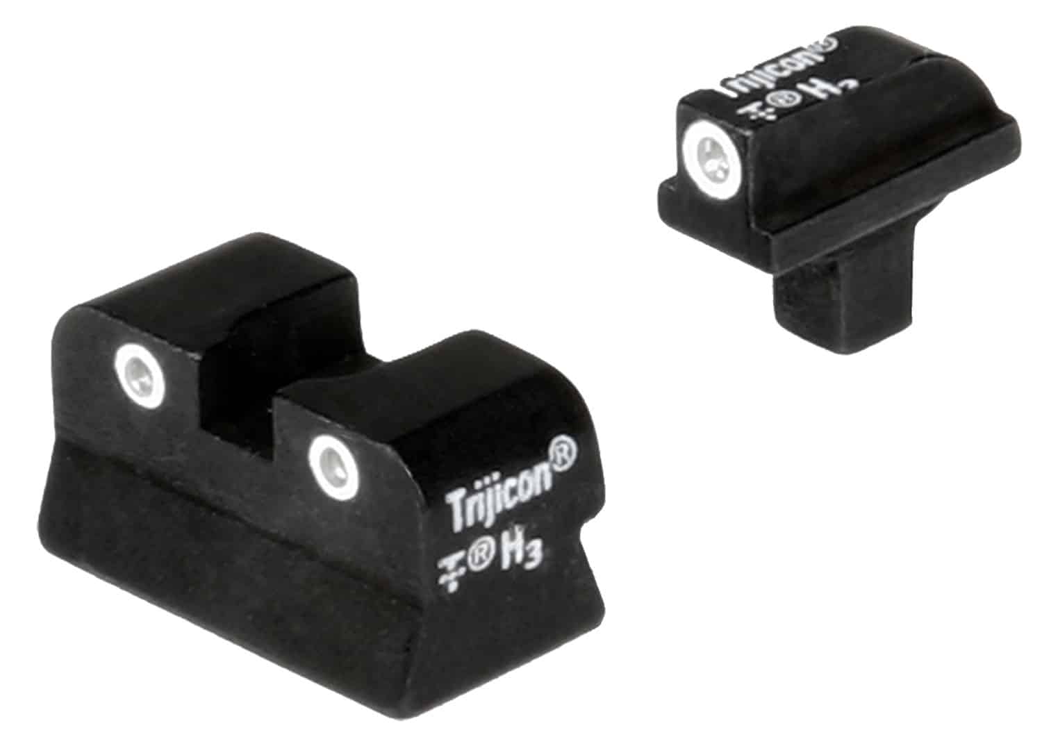 Trijicon Bright & Tough Night Sights are three-dot iron sights that increase night-fire shooting accuracy by as much as five times over conventional sights. Equally impressive, they do so with the same speed as instinctive shooting – and without the need for batteries. Housed in a metal body and cushioned within silicone rubber, Bright & Tough Night Sights feature a unique shock-resistant design. Each lamp is capped with a sapphire jewel to help evenly distribute the light while protecting the lamp from solvents and puncture. Contained within aluminum cylinders for additional protection, the lamps are mounted on silicone rubber cushions to withstand shock and heavy recoil. Green lamps are warranted for 12 years from the date of manufacture. This set with narrow staking tang (.125); Professional installation recommended. Front Sight Width: 0.125″. Front Sight Height: 0.36″. Rear Sight Height: 0.325″.