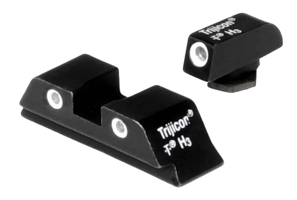 Trijicon Bright & Tough Night Sights are three-dot iron sights that increase night-fire shooting accuracy by as much as five times over conventional sights. Equally impressive, they do so with the same speed as instinctive shooting – and without the need for batteries. Housed in a metal body and cushioned within silicone rubber, Bright & Tough Night Sights feature a unique shock-resistant design. Each lamp is capped with a sapphire jewel to help evenly distribute the light while protecting the lamp from solvents and puncture. Contained within aluminum cylinders for additional protection, the lamps are mounted on silicone rubber cushions to withstand shock and heavy recoil. Green lamps are warranted for 12 years from the date of manufacture. Professional installation recommended. Front Sight Width: 0.144″. Front Sight Height: 0.203″. Rear Sight Height: 0.256″.