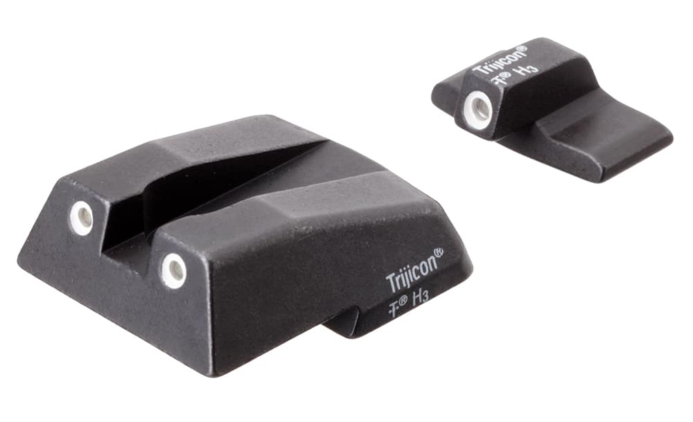 Trijicon Bright & Tough Night Sights are three-dot iron sights that increase night-fire shooting accuracy by as much as five times over conventional sights. Equally impressive, they do so with the same speed as instinctive shooting – and without the need for batteries. Housed in a metal body and cushioned within silicone rubber, Bright & Tough Night Sights feature a unique shock-resistant design. Each lamp is capped with a sapphire jewel to help evenly distribute the light while protecting the lamp from solvents and puncture. Contained within aluminum cylinders for additional protection, the lamps are mounted on silicone rubber cushions to withstand shock and heavy recoil. Green lamps are warranted for 12 years from the date of manufacture. Professional installation recommended. Front Sight Width: 0.138″. Front Sight Height: 0.24″. Rear Sight Height: 0.349″.