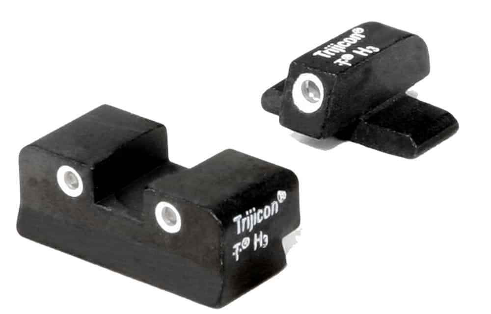 Trijicon Bright & Tough Night Sights are three-dot iron sights that increase night-fire shooting accuracy by as much as five times over conventional sights. Equally impressive, they do so with the same speed as instinctive shooting – and without the need for batteries. Housed in a metal body and cushioned within silicone rubber, Bright & Tough Night Sights feature a unique shock-resistant design. Each lamp is capped with a sapphire jewel to help evenly distribute the light while protecting the lamp from solvents and puncture. Contained within aluminum cylinders for additional protection, the lamps are mounted on silicone rubber cushions to withstand shock and heavy recoil. Green lamps are warranted for 12 years from the date of manufacture. Professional installation recommended. Fits Sig Sauer models calibrated for 9mm and .357SIG. Front Sight Width: 0.14″. Front Sight Height: 0.22″. Rear Sight Height: 0.249″.