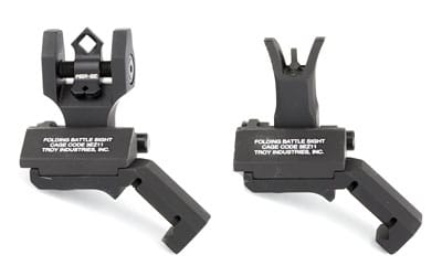 Durability and dead-on accuracy have made Troy Industries Folding BattleSights the choice of Special Ops and tactical users worldwide. The TROY 45 Degree Folding BattleSights fold compactly to both sides of the rifle. With an ambidextrous sight base, TROY 45 Degree BattleSights work seamlessly with magnified optics. Easy to install and deploy, these sights position apertures at factory height. A stainless-steel cross-locking system ensures sight remains upright and zeroed under extreme combat conditions.