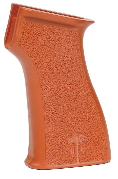 Addressing a common concern among AK owners that the standard grip is too small, the US PALM AK Grip delivers more control through an ergonomic, ultimately more comfortable design. This full-size Westernized rifle grip features a palm swell shaped to drive the user’s hand up, and into, the receiver/grip junction. Aggressive stippling ensures a positive grip.