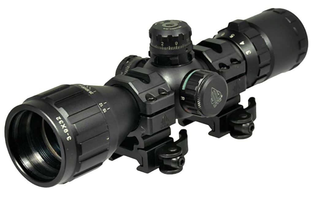 UTG SCP-M392AOLW BugBuster Black Hardcoat Anodized 3-9x32mm 1″ Tube Illuminated Red/Green Mil-Dot Reticle