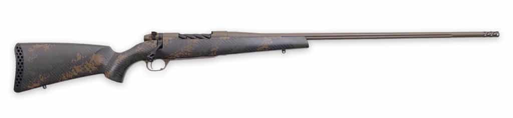The Mark V Backcountry 2.0 was purpose-built to be the best lightweight mountain rifle on the market. It features Peak 44s Blacktooth carbon fiber stock which weighs only 19oz making it one of the lightest production stocks on the market. Equipped with an Accubrake ST and 3D Hex Recoil pad, the Backcountry 2.0 series manages recoil well even with Weatherbys historic magnum cartridges.
