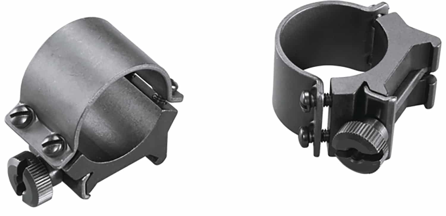 Weaver Sure Grip Detachable Rings use a four-screw system and have steel caps and an aluminum saddle for added strength. Also features the quick detach system, allowing you to loosen the thumb screws and go to iron sights in seconds.
