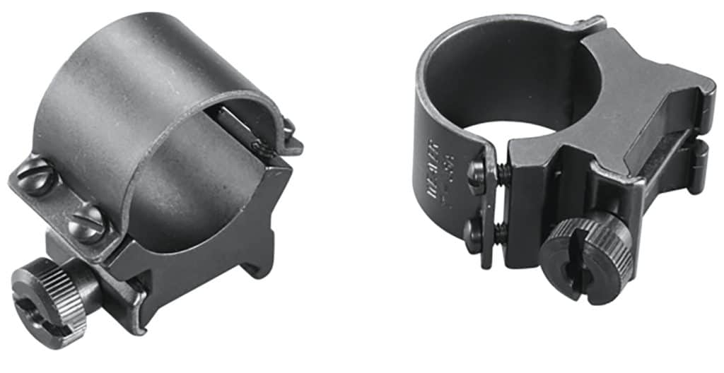 Weaver Sure Grip Detachable Rings use a four-screw system and have steel caps and an aluminum saddle for added strength. Also features the quick detach system, allowing you to loosen the thumb screws and go to iron sights in seconds.