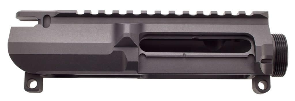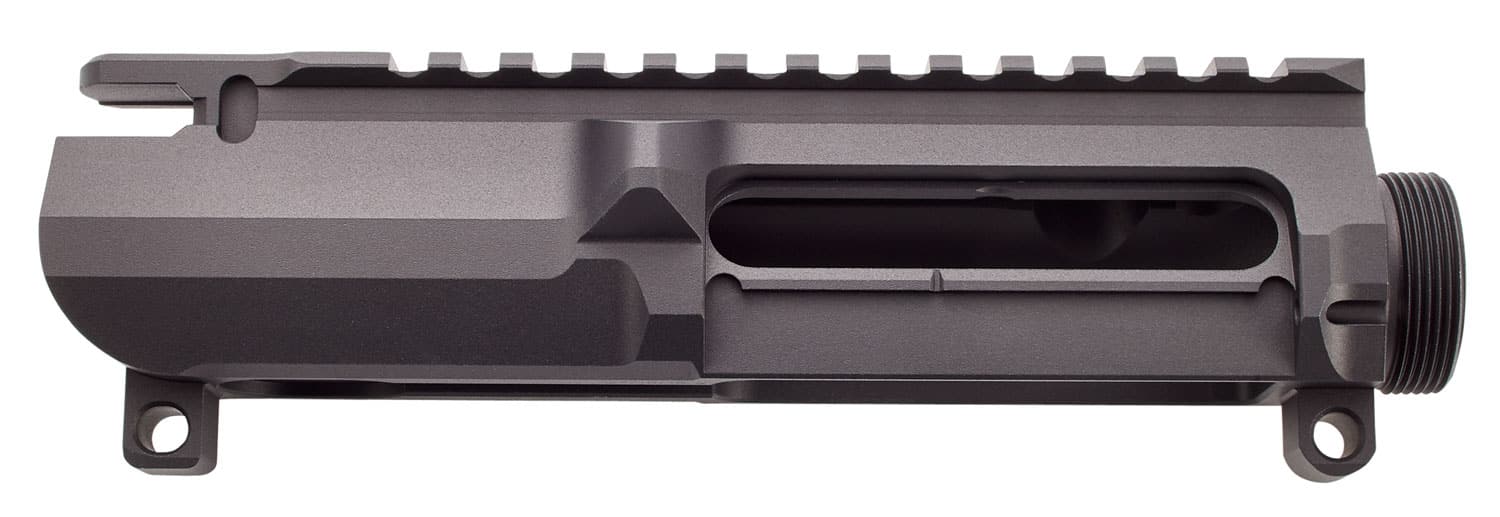 The Billet-AR upper receiver set is 100% machined in the USA and was engineered from the ground up to address structural design weaknesses in standard USGI receivers and enhance overall tolerances. It has a precise bolt raceway for smoother chambering, more rigid receiver walls to reduce firing flex. The Billet-AR upper receiver is CNC machined from 7075-T6 aerospace aluminum billet stock with a top Picatinny rail, M4-style extended feed ramps, and smooth side profile without forward assist for maximum accuracy potential. NOTE: Requires a dust cover, forward assist, charging handle, barrel, handguard, gas block, muzzle device, gas tube and BCG (Bolt Carrier Group) to complete.