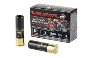 Forty yards has long been the standard by which all turkey loads were measured. No more. It’s time to go farther with Winchester Longbeard XR. Featuring new-to-the-world Shot-Lok Technology. Longbeard XR offers the tightest patterns and longest shot capability of any traditional turkey load in history – with twice the pellets in a 10″ circle out to 60 yards. Longbeard XR has the knockdown power of popular heavier-than-lead loads at a fraction of the cost, meaning it’s a turkey-slamming game changer for hunters looking to push the limits.