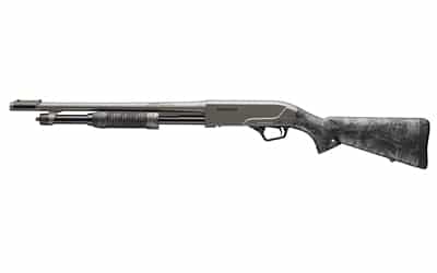 Winchester Defender shotguns are lightweight jacks-of-all-trades. The 18″ barrel length with the cylinder choke tube makes it an ideal utility shotgun in camp, is maneuverable in tight brush and tucks neatly behind the seat of your truck. This Hybrid Defender has a style all its own with a durable Gray Perma-Cote finish on the barrel and receiver and Forged Carbon hydrodipped stock.