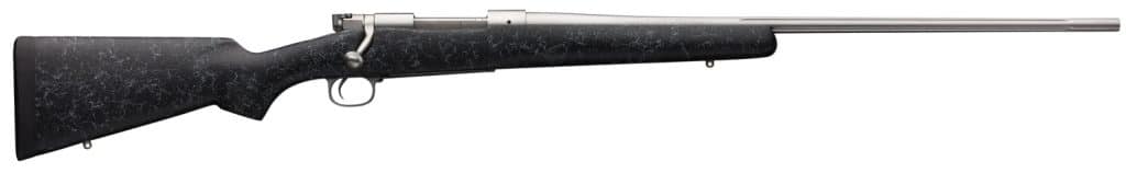 The Model 70 Extreme Weather Stainless utilizes a Bell and Carlson lay-up composite stock that provides a solid feel and features trim and lightweight ergonomics. It has a textured charcoal gray matte finish and improved grip in adverse conditions. The sculpted cheekpiece helps insure proper eye-to-scope alignment from any shooting position. The thick, black Pachmayr Decelerator pad helps take the felt recoil bite out of high performance magnum cartridges. Like all Model 70s today, it features the Pre-64 type claw extractor with Controlled Round Feeding so the cartridge may be easily withdrawn from the chamber at any point after it leaves the magazine. The Extreme Weather SS rifles’ free-floating, fluted stainless steel barrel is made in the same factory as those found on U.S. military rifles and machine guns and features a recessed target crown to protect the rifling.