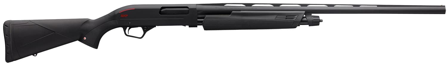 Pick up the Winchester Super X Pump (SXP) shotgun and experience the light weight, centered balance and instant pointability firsthand. The Super X design provides you with the fastest follow-up shots. No other pump offers the feeling of an inertia-assisted slide-action that can deliver three shots in a half second. Whether its super-speed clays or fast-flushing upland game, keep up with shootings fastest action with the Super X Pump, the perfect choice for pump shotgun lovers. This Black Shadow model features a black synthetic stock with textured gripping surfaces.