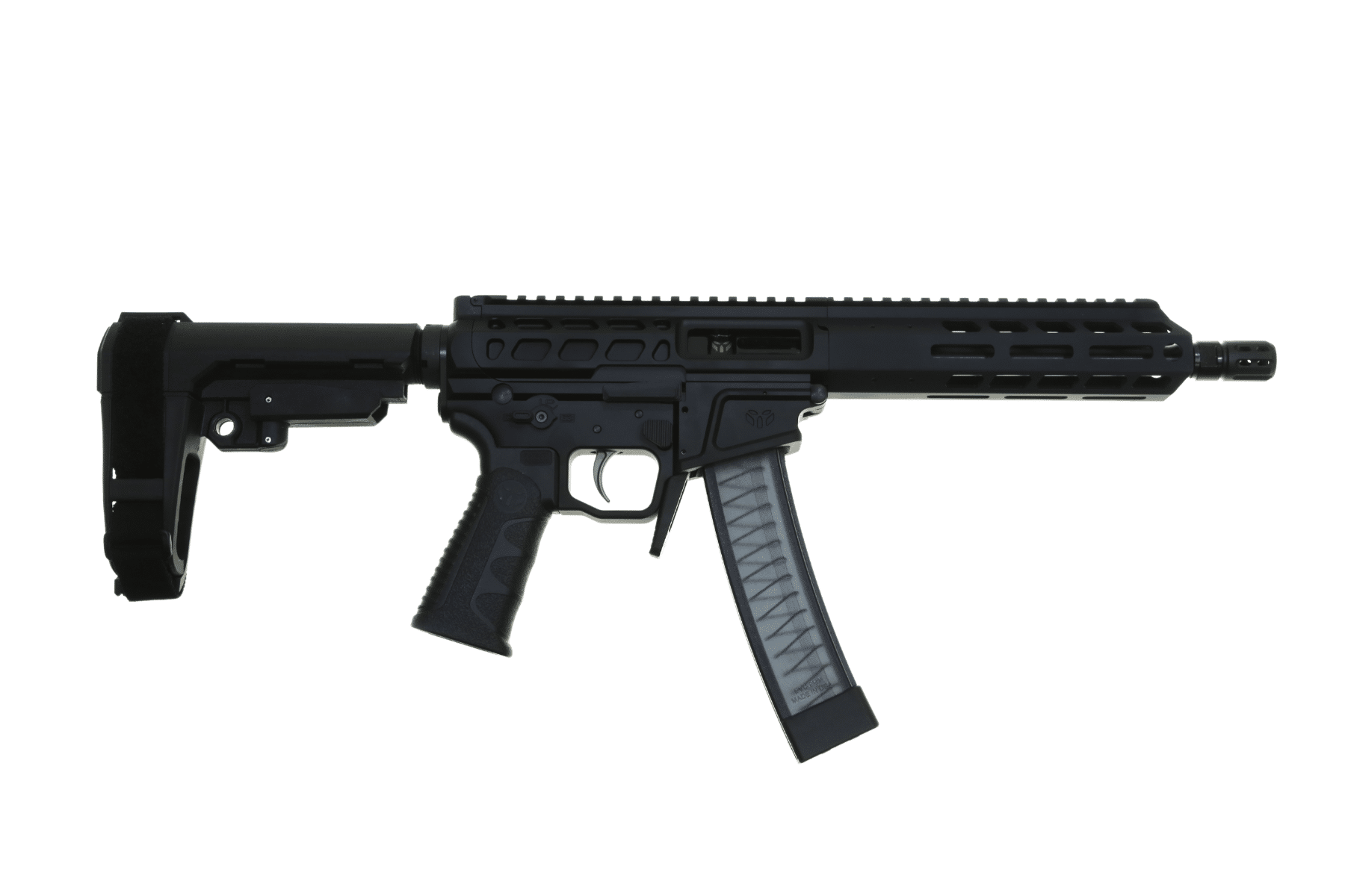 The new WARSCORP9 from Wraithworks is a USA-made AR-9 that accepts Scorpion Evo 9mm magazines! The WARSCORP9 features a machined billet upper and lower receiver as well as a 6061 T-6 7″ M-LOK handguard. The WARSCORP9 is compatible with standard AR-15 barrels, trigger groups, handguards, furniture, and modified bolt carriers. The lower receiver is fully ambidextrous which includes an ambi safety, ambi bolt catch levers, and even ambi magazine release buttons and paddle release. The paddle will release the magazine and pressing the magazine button on either side of the lower receiver will also activate the paddle release and release the magazine. Controls will be extremely familiar to anyone who has used an AR-15, and the controls are designed to be reached and operated by the pistol grip hand. The 1:10 twist 8.5” Nitride coated 9mm barrel with 1/2×28 threads is complemented by a Wraithworks custom 9mm muzzle device. The operating system is rounded out with a nitrided bolt, 9mm buffer and mil-spec carbine length receiver extension with an installed SB Tactical SBA3 adjustable pistol brace. The Wraithworks WARSCORP9 pistol weighs in at 5lbs 8oz unloaded and has a usable length of 24″ with the adjustable pistol brace collapsed and 26.5″ with the adjustable pistol brace fully extended. Aluminum components are anodized in a durable Mil-Spec Type III Class 2 hardcoat. The WARSCORP9 is 100% designed, manufactured, and assembled in the USA. Technical Specifications Caliber: 9x19mm (rated for +P ammunition) Barrel: 8.5″ 1/2×28, 4150 Chrome Moly, 1:10 Twist, Button Rifled, Nitride Finish Mags Included: 2 Mag Type: 32rd Manticore (CZ Scorpion Evo Compatible) Operating System: Blowback Stock/Brace Type: SB Tactical SBA3 Adjustable Pistol Brace Overall Length: 24.0″ Collapsed – 26.5″ Extended Legal Length: 25.0″ (end of Receiver Extension to Muzzle Crown) Forend: 6061 T-6 7″ Mil-Spec Class III Type 2 Hardcoat anodized M-lok forend with QD sling swivel attachment points Trigger: Installed BSFIII Trigger Weight (unloaded): 5lb 8oz UPC: 810046200070 MPN: WARSCORP9-BLK-BFSIII Not for civilian sales in CA, DC, IA, NJ, NY, HI, WA, MA, RI, FL, MA, MD or CT.