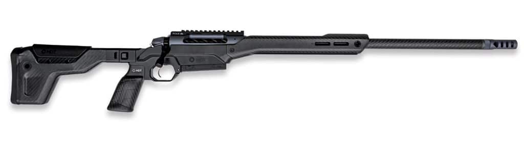 The Alpine MDT Carbon is built on Weatherby’s bolt action rifle platform, the Model 307. Meant to complement the historic Mark V and Vanguard lineups, the Model 307 action is a 2-lug, fully cylindrical action compatible with many aftermarket accessories. The Alpine MDT Carbon sits on MDT’s lightweight HNT26 Chassis System, which is their first purpose-built hunting rifle chassis. This stock provides all of the benefits one expects from a chassis system such as v-block bedding, adjustable length of pull, adjustable comb, and AICS magazine compatibility. Weighing in at just 26oz, the chassis is constructed of a magnesium alloy stock, carbon fiber forend, carbon fiber pistol grip, and carbon fiber buttstock. The forend has an integral ARCA rail for easy attachment to a tripod and a foldable buttstock for compact storage. The BSF carbon barrel delivers unmatched accuracy and comes with Weatherby’s Accubrake DST (Directional Self-Timing Brake).