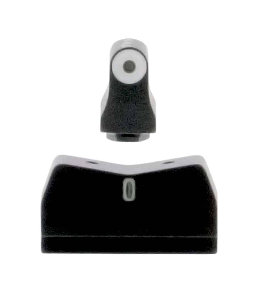 XS Sights’ DXT Big Dot Night Sights for Glock are an excellent choice for those who want to enhance their EDC pistol’s performance. Designed for defensive use, the DXT Night Sights feature a reflective white dot that bounces ambient light to provide increased low light visibility alongside the glowing tritium center. The front sight is large and highly visible, which helps solve many issues from aging eyes to deteriorating vision. The high-contrast white front sight is complemented by the low-profile V rear, which provides greater visibility of the front sight. The simple dot-the-“i” sight picture prevents confusion between the front and rear sight in high-stress situations. The rear sight has a white outline with a tritium center, and the rear sight ledge is designed for one-handed slide manipulations. Front Sight Dot Width: 0.188″ Overall Sight Height: 0.405″.